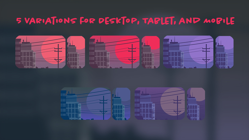 "Cityscape" Wallpaper pack comes with 5 variations perfect for any operating system such as iOS, Android, MacOS, PC, and more. Each variation comes with a desktop, tablet, and mobile version. Mix and match and see what works best for you!